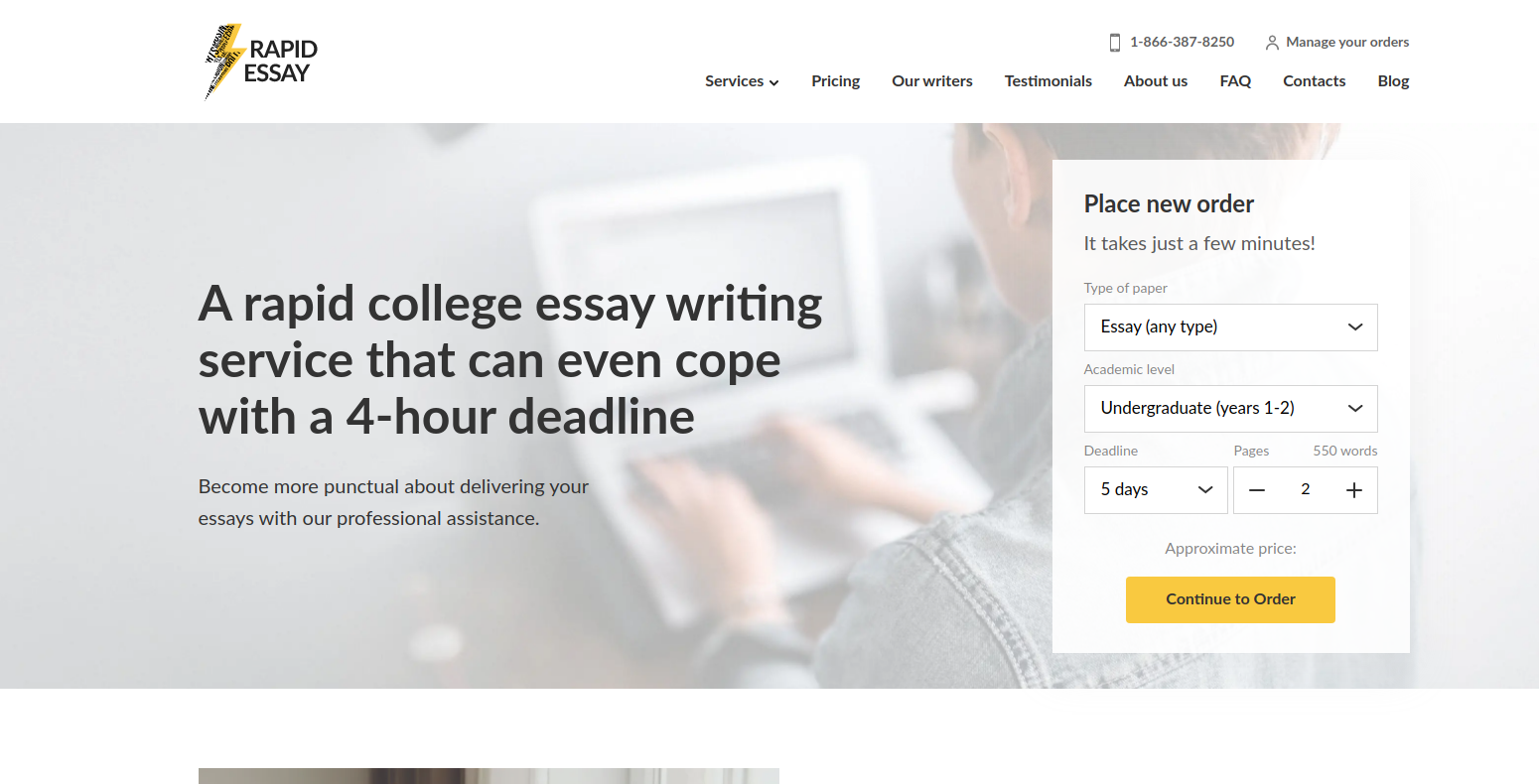 “I often get assigned homework with short deadlines, so I need a service that can help me do it quickly. I’m so glad I found RapidEssay because these guys always have my back,”—Brian, a college student from Houston.