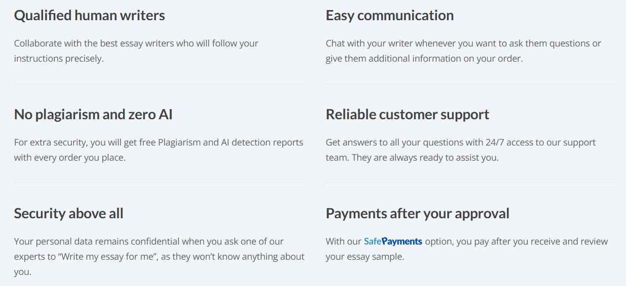 The company has a secure payment system, which means that customers should not worry about the safety of their financial info. However, make sure that the website you are paying for is essayshark.com. The payment options include:
