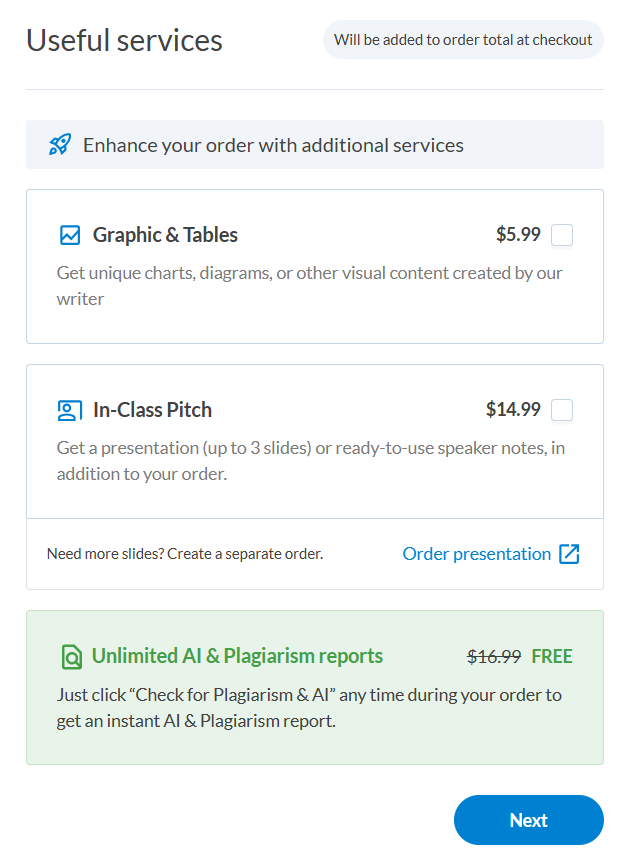 The greatest challenge with many online writing companies is paper customization. Students often get papers that do not fit their profiles. At EssayShark, emphasis is put on paper customization, ensuring that customers get what they really need. The ability to order graphics and tables for your paper, as well as a short presentation for your in-class pitch, is a great demonstration of customization possibilities here.